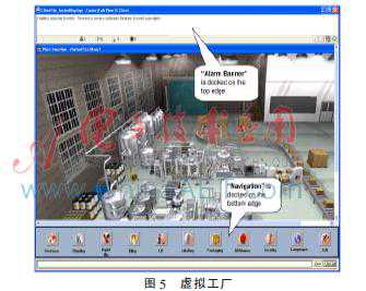 图5就是某工厂车间的虚拟界面,这个界面完全对应真实的生产状态。通过这样的方式,一个操作员、一台电脑就可以管理这个厂区,以这种方式工作必将大大节省人力物力。