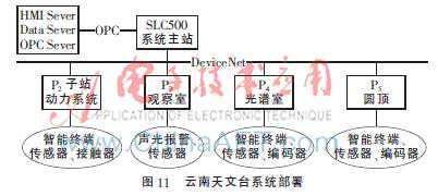 本地版和网络版的区别不是太大,唯一的区别是,本地版不能建立域的概念,准确地说是只能建立一个域,只能实现1+N的结构——一个HMI服务器,N个数据服务器。这种架构适合规模不是太大,也没有太多的区域划分的工厂,只通过一个域来进行统一管理。其他部分,本地版部署的技术细节与网络版一致[4]。下面简单介绍一下云南天文台一米红外太阳塔的系统部署,其所采用的就是本地部署的方案,如图11所示。
