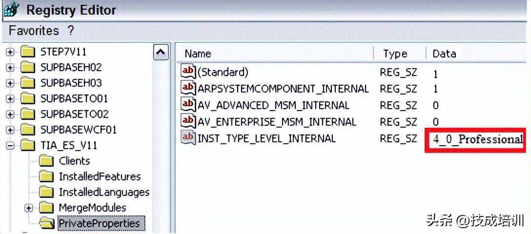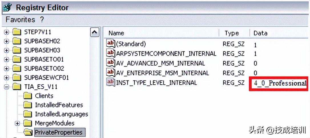 如果在安装STEP7(TIAPortal)V12的过程中中止,并提示必须先卸载WinCCProfessionalV11,即使已经卸载过此软件,造成这种情况的原因可能是注册表代码问题。以Windows7为例,须删除注册表条目,如下: