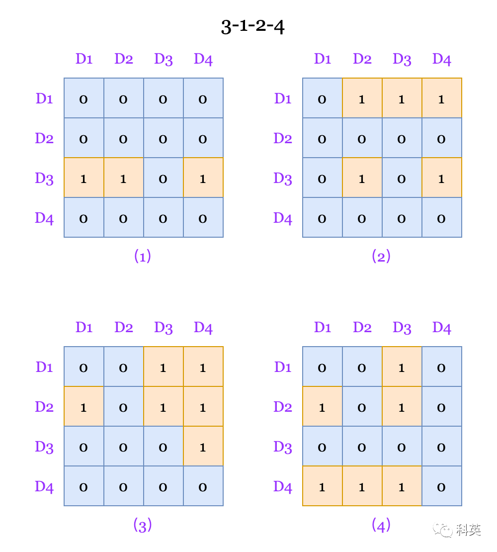 首先,定义一个行、列都与缓存路数相同的矩阵。当访问某个路对应的缓存行时,先将该路对应的所有行置为1,然后再将该路对应的所有列置为0。