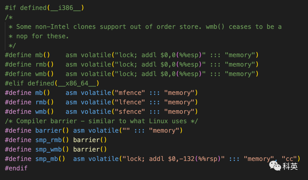 在Arm等乱序执行的平台上可以解决问题;幸好x86-TSO平台上读操作不能延后,也就不需要读写屏障,手动加了也是空操作(no-op)。