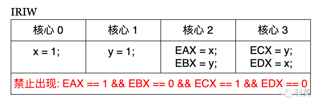 解决办法是添加读写屏障(LoadStorebarrier),如下表格: