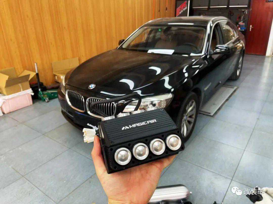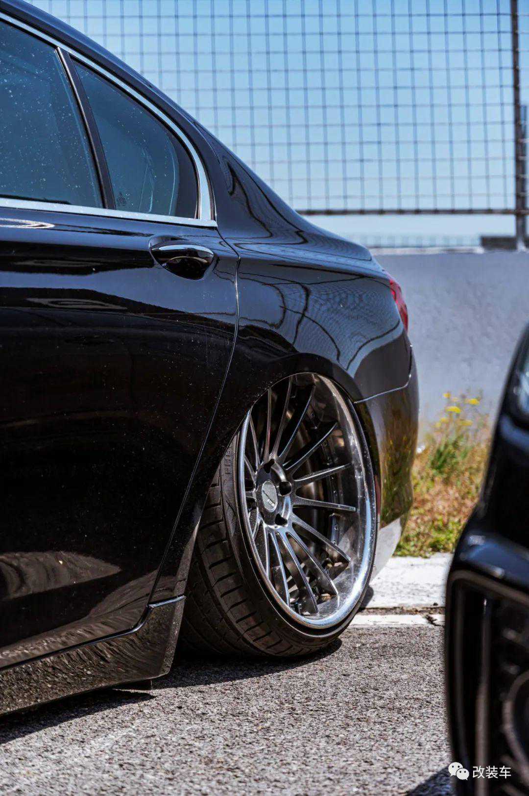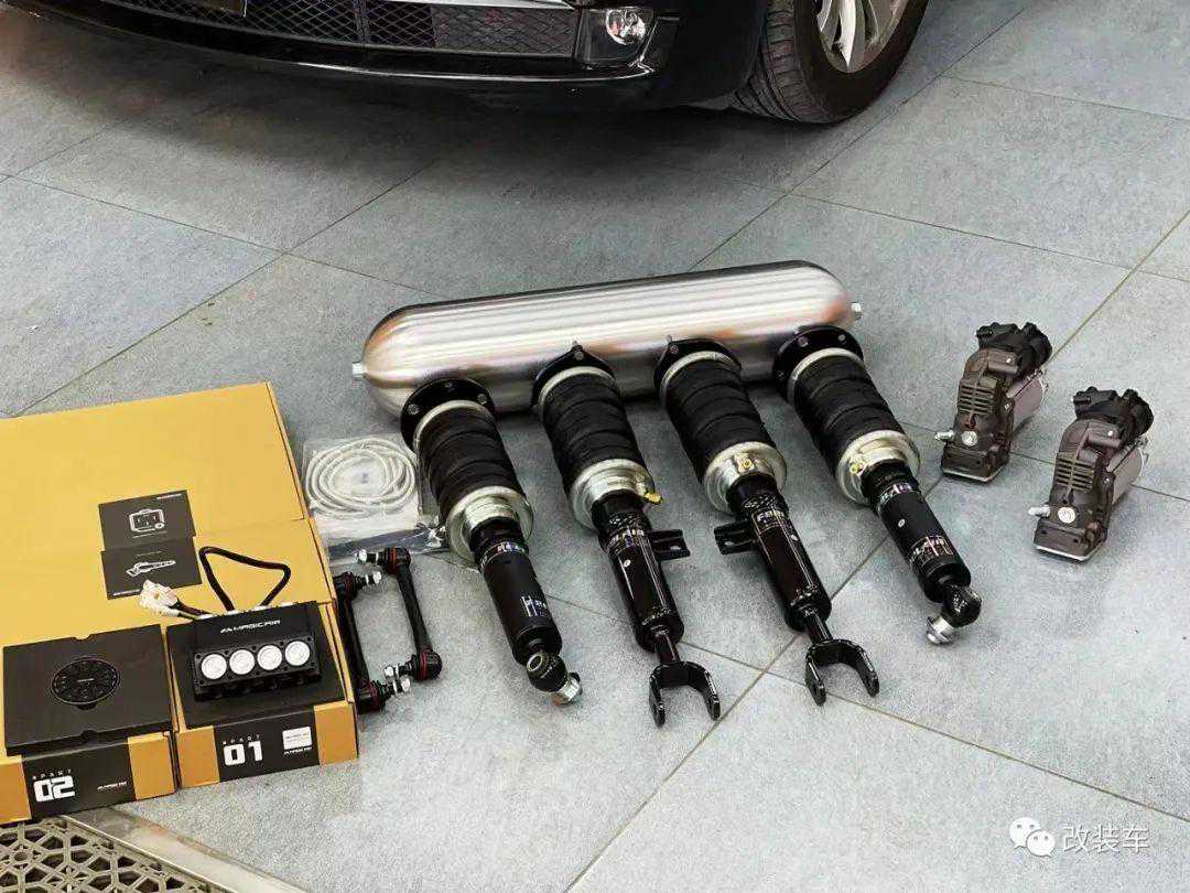 "首先是避震方面,换上了一套MagicAIR气动控制系统+FEELAIR气动避震,觉得低趴才是行政级车改装的正确方式,毕竟趴下后才更能体现出它大佬的气息。"