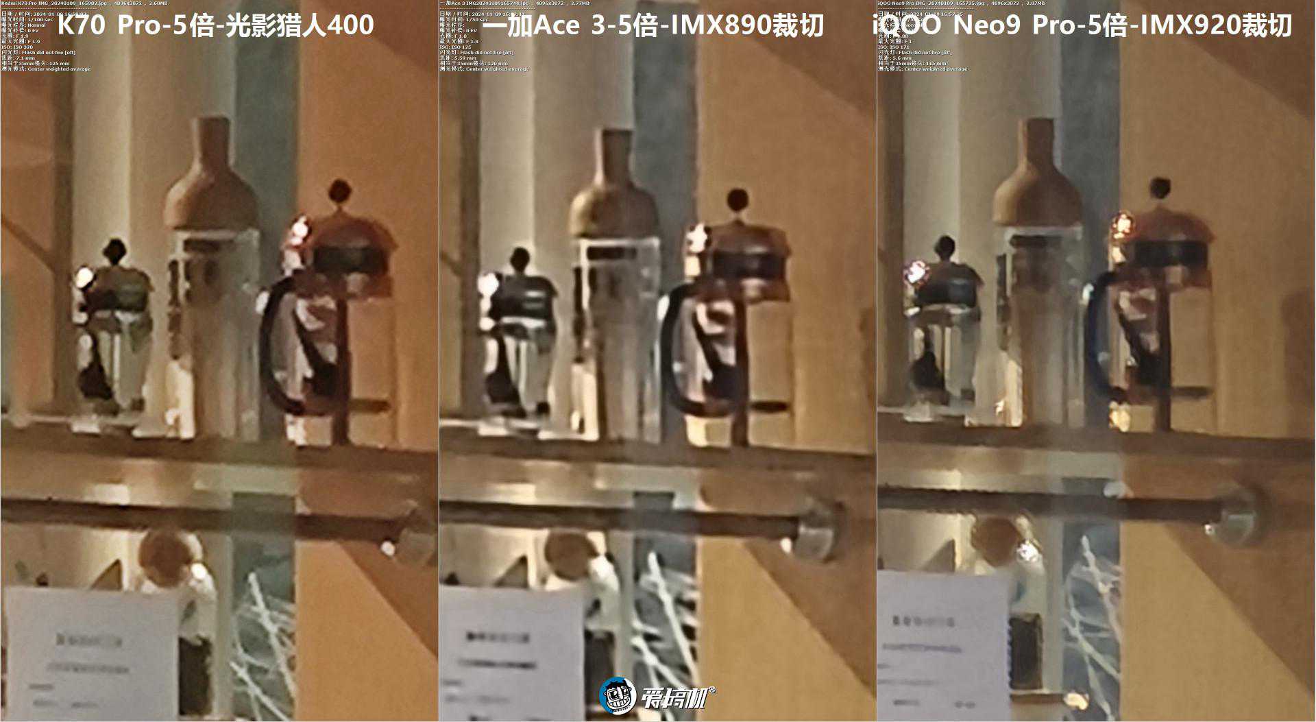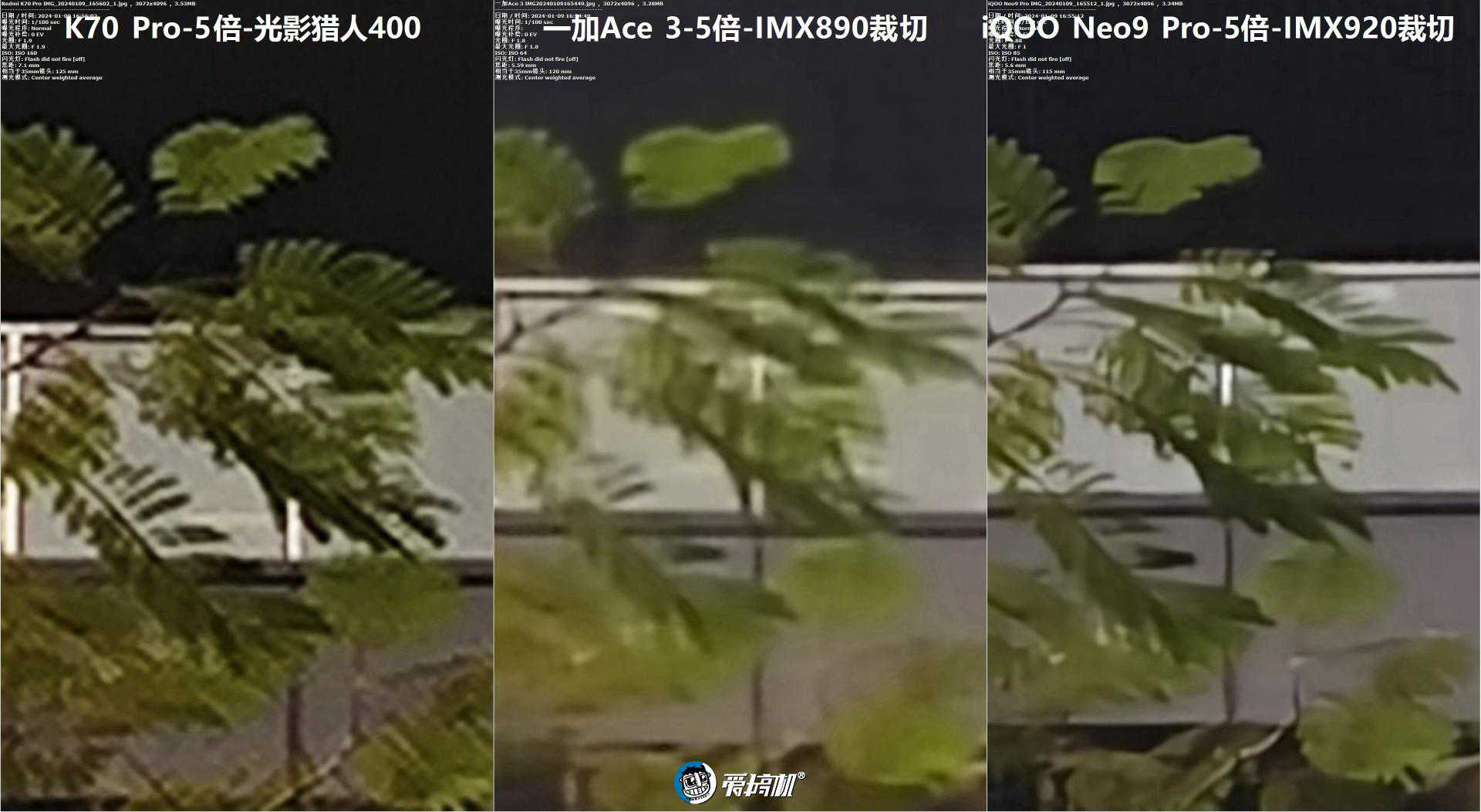 “5倍变焦”对比5,中央放大(iQOONeo9Pro的5倍“摇摇乐”算法明显更强)