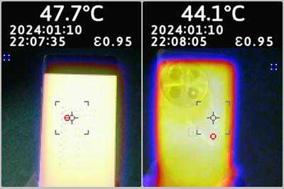 一加Ace3在3DMark烤机中,最高47.7度,正面比背面高3度以上。