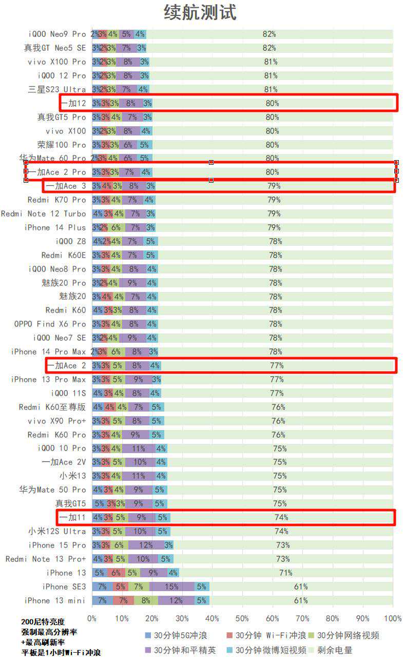 (充电测试,1%开始。同一行的颜色条越长,速度越快↑。已打开vivo超快充电模式/OPPO智能极速充电/小米快充加速与低电疾充等功能。部分厂商/机型默认关闭相关功能,需手动开启)