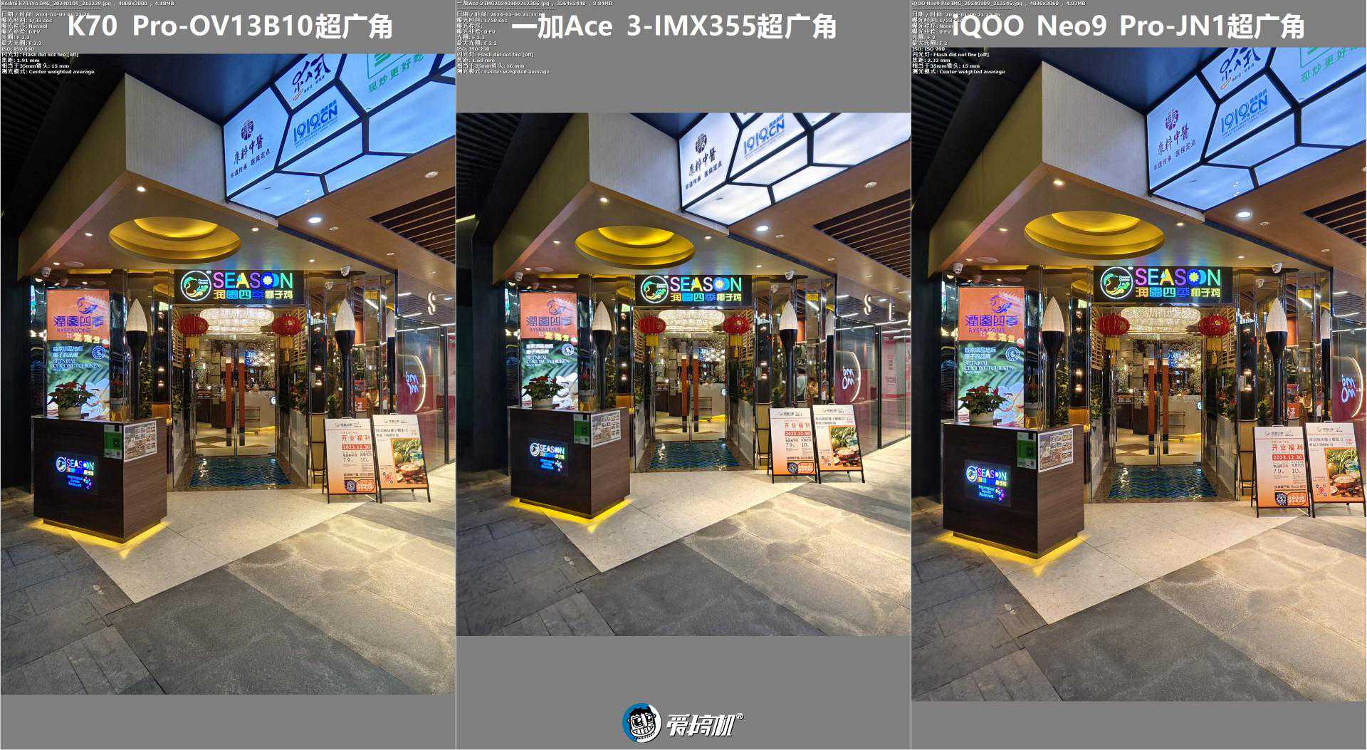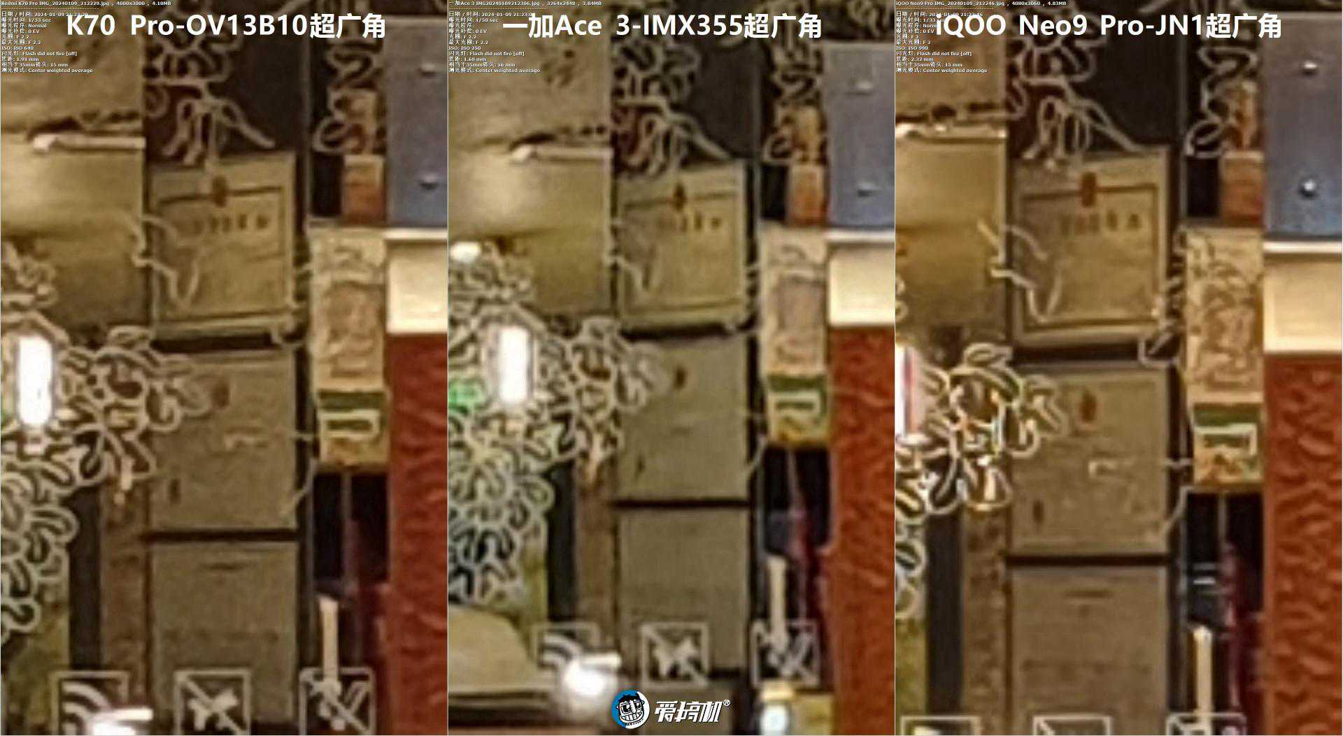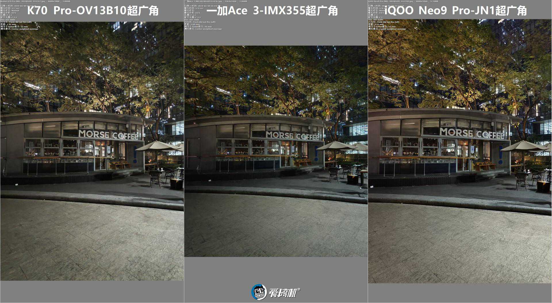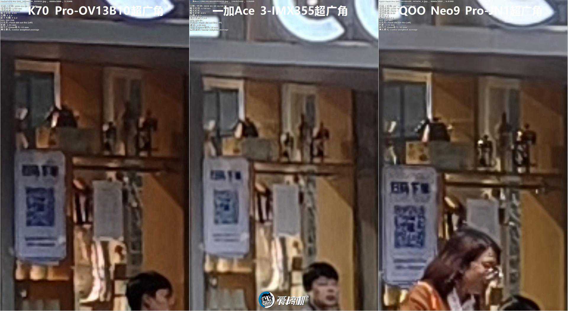 超广角对比3,全局与中央放大(夜景算法的差别,让一加Ace3竟然打赢了K70Pro……)