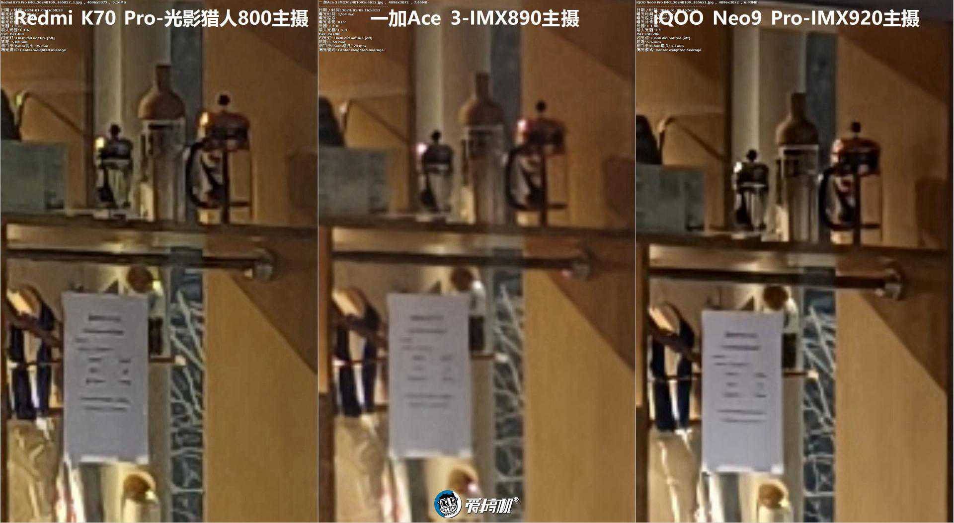 因为是深圳湾一号业主,我们只有名字带Pro、定位比一加Ace3更高的iQOONeo9Pro和RedmiK70Pro作为对手(它们主摄和Neo9和K70是一样的,主摄表现要靠大家脑补了):