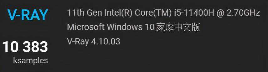 ▲V-Ray处理器渲染测试,10383Vs9168,i511400H领先i710750H比例为13.3%。若是同功率,我们预测领先幅度可达16%以上。