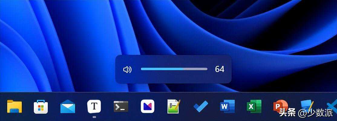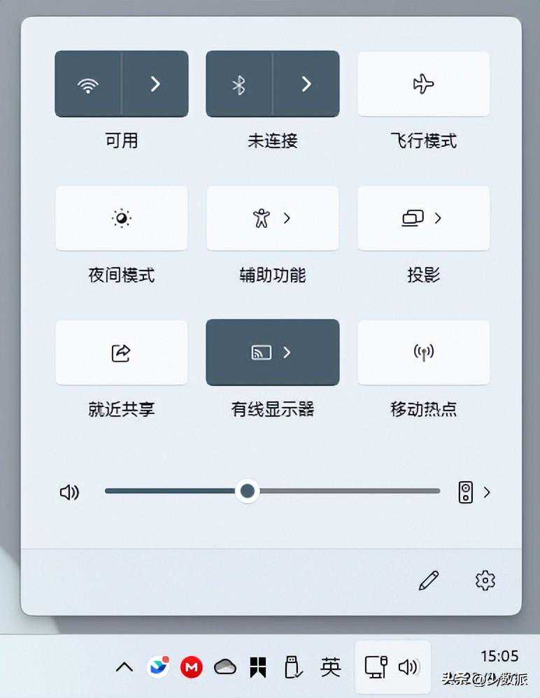 而从Windows8时代就延续而来的Metro风格的音量和亮度滑块在22H2中也焕然一新,变得更加符合Windows11的设计语言,滑块的位置也从原本的左上角变成了任务栏上方。