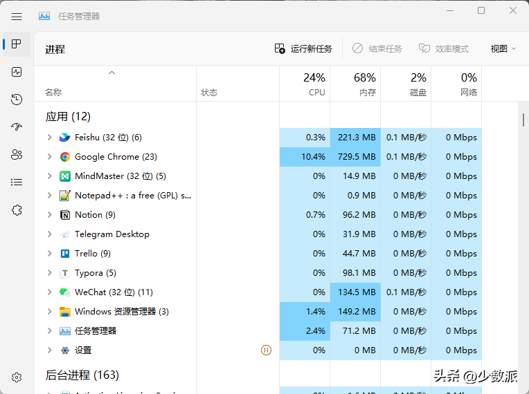 另外,在22H2的资源管理器中我们也能看到更多采用「效率模式」运行的应用,也可以手动为部分应用开启效率模式。关于这个模式的介绍以及用法,不久前我们在另一篇文章里已有介绍。