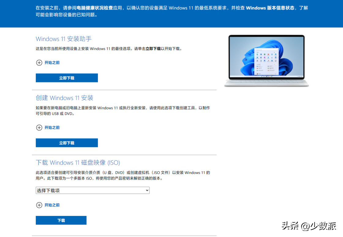 你还可以直接通过上一条同一页面中的「傻瓜式」Windows11安装助手来无痛升级。