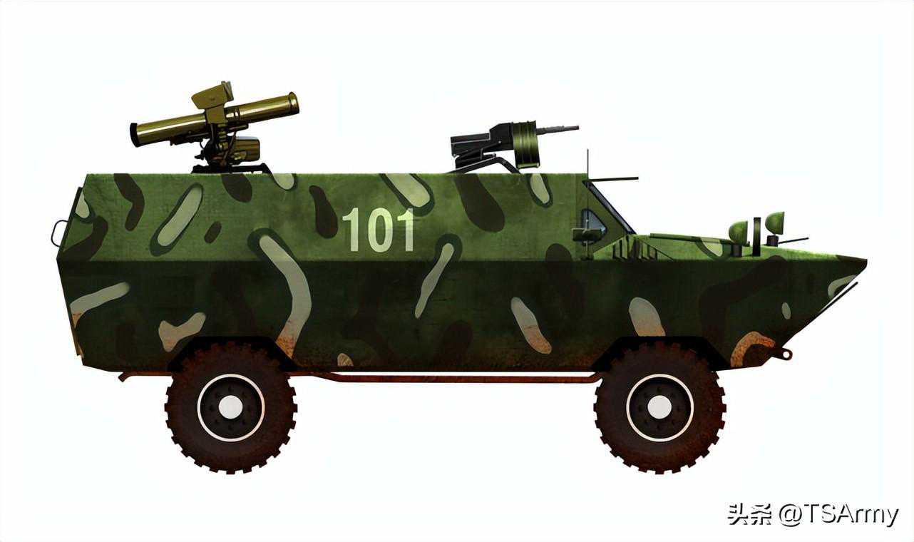 这个型号取消原有的炮塔,在尾部安装了24联合一的107毫米火箭炮发射器,前部还安装了一挺KPVT型14.5毫米高射机枪。