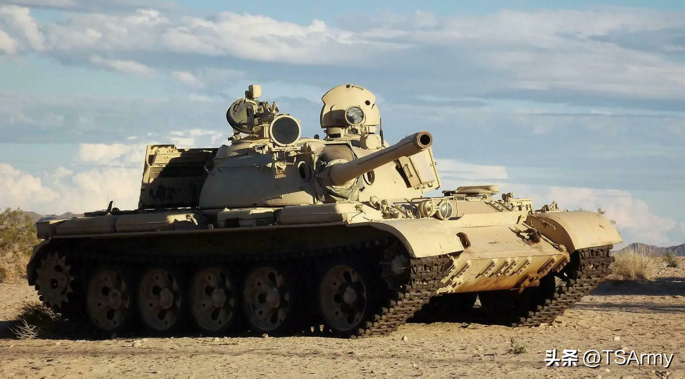 T-62主战坦克是前苏联在50年代末期,继承T-54/55型所研发的全新一代产物,作为国际上的标准二代半坦克,T-62的车身全长不含炮管6.25米,宽度3.27米,高度2.36米,战斗全重37.5吨,动力系统搭载一台B-55-5型4冲程12缸水冷柴油发动机,最大功率580马力,最快行进速度每小时50公里。