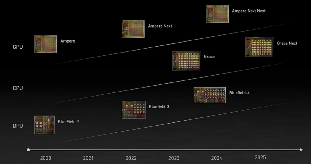 英伟达的GPU、CPU和DPU路线图。图源:英伟达