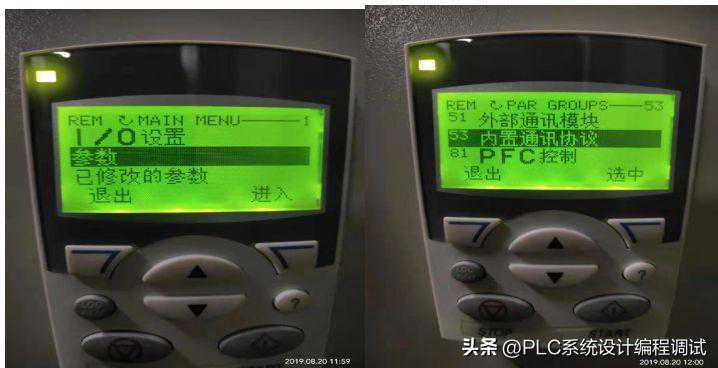1、【参数→98(可选件)→9802(通讯选择)→标准MODBUS