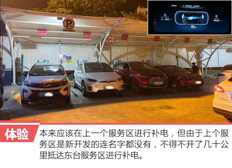 PS:此时千万别慌,要以最省电的方式赶往下一个服务区。当我们抵达东台服务区时车位出现饱和。抵达,服务区充电桩是看到有4个充电桩中2台特斯拉正在充电,不过当我们正准备给车充电时,特斯拉车主告诉我们其中2个存在故障,他们已经拨打过电话请求修理,但是工作人员以国庆耗时太长赶不过来为由给拒绝了。