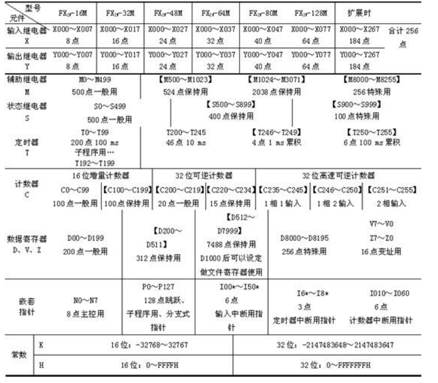 辅助继电器:通用型、掉电保持型和特殊辅助继电器三种。