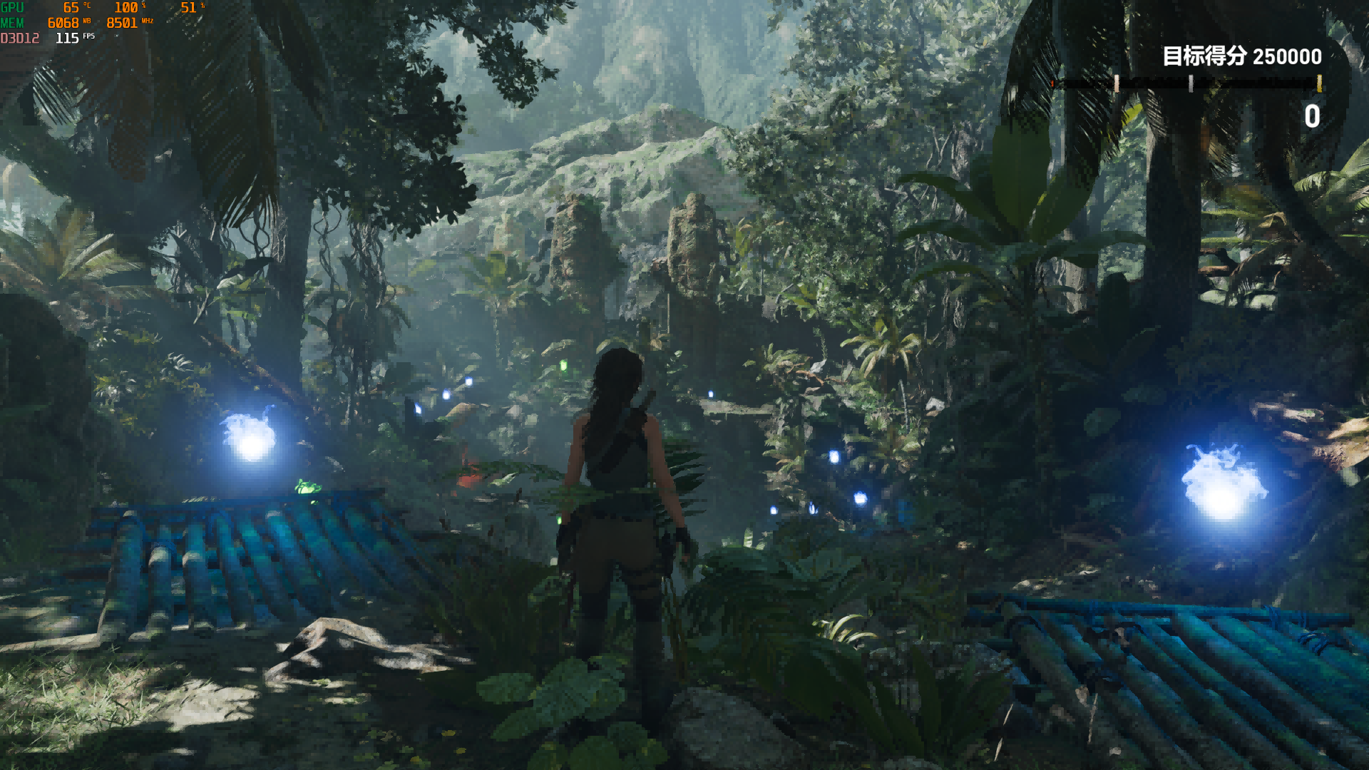 在游戏《古墓丽影:暗影》中,2K分辨率下,启用DLSS,此时游戏的帧数为115帧,