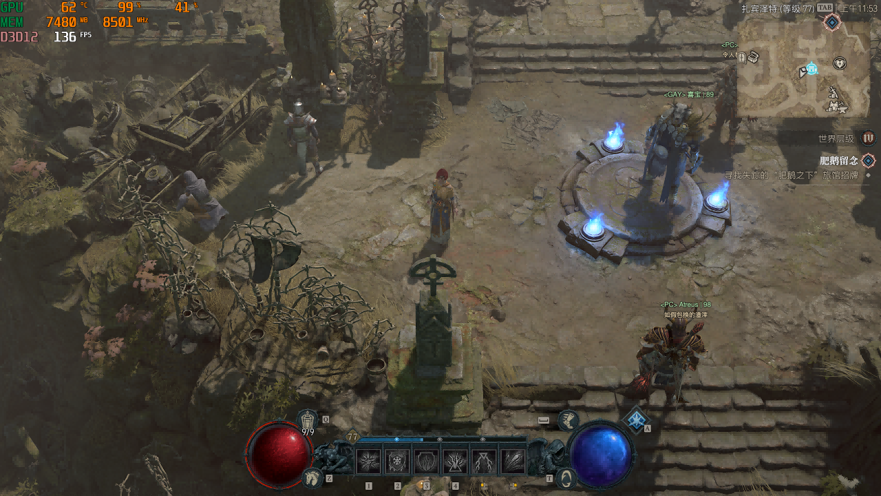 《暗黑破坏神IV》不仅支持光线追踪技术与DLSS3超分辨率技术和NVIDIAReflex低延迟技术,而且优化比较不错。在《暗黑破坏神IV》游戏中,实测的帧率为136FPS