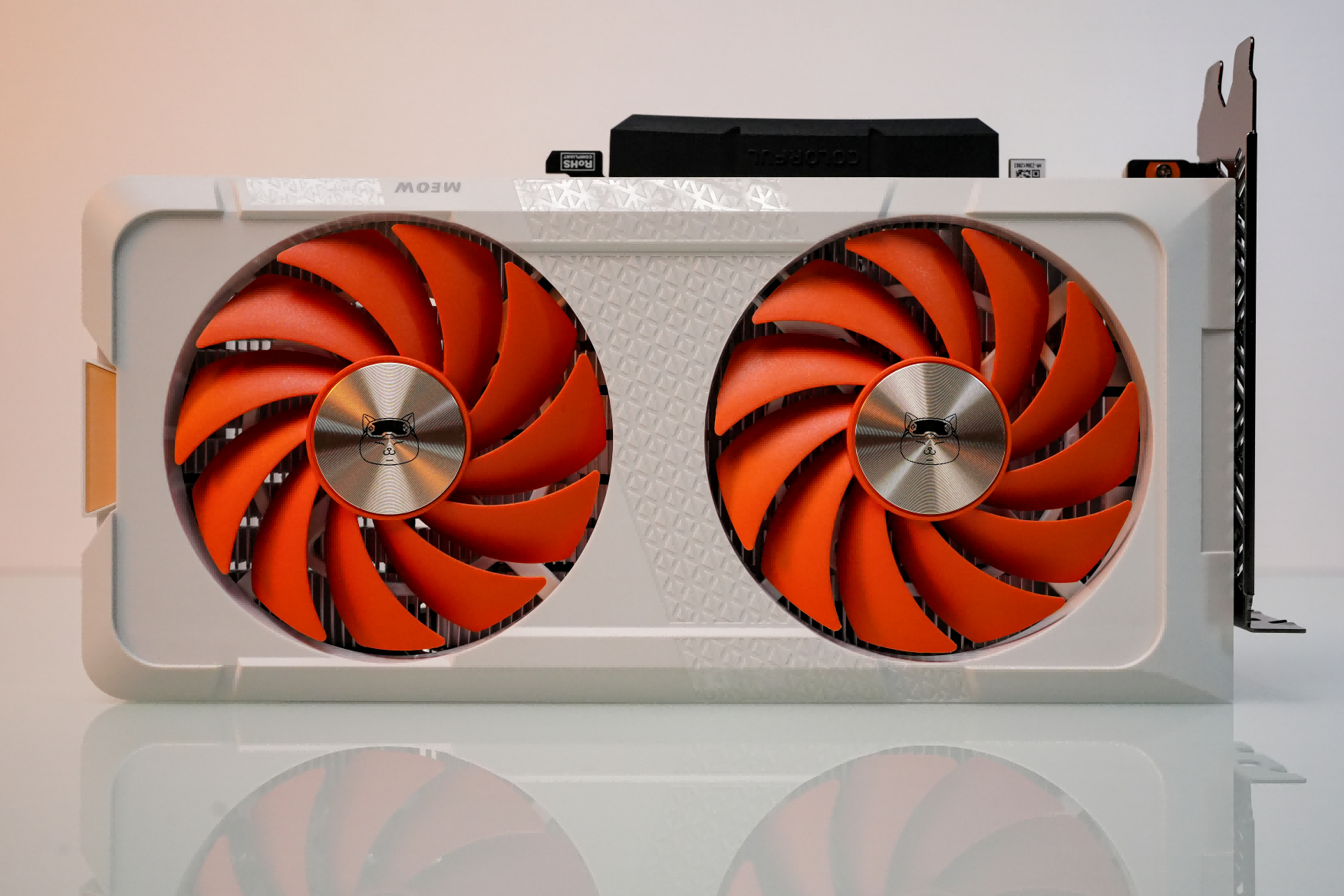 COLORFIREGeForceRTX4060橘影橙8GB整体采用了橘宝身上充满活力的橘色调,并且与灰白色相互融合,带来一种灵动俏皮的视觉美感。双风扇的设计更显紧凑,小巧的显卡,能够装入主流的机箱当中。