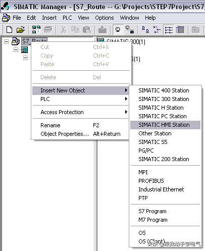 3.1.1新建一个STEP项目,插入一个SIMATICHMIStation,如图1所示: