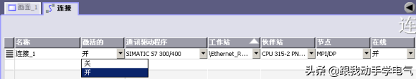 3.3.9双击左侧项目树的连接,可以看到系统建立的通讯连接,默认情况下次连接是关闭的,将其激活,如图24所示: