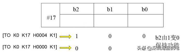 FX2DA转换的数字量最大为4000,也就是2^12,因此DA模块只能转换12位数据,而17里面有b2~b0,它的功能是: