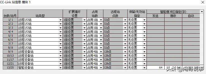 设置好CCLINK站号,站类型“远程设备站”、占用站数根据实际情况选择,一般是4站。