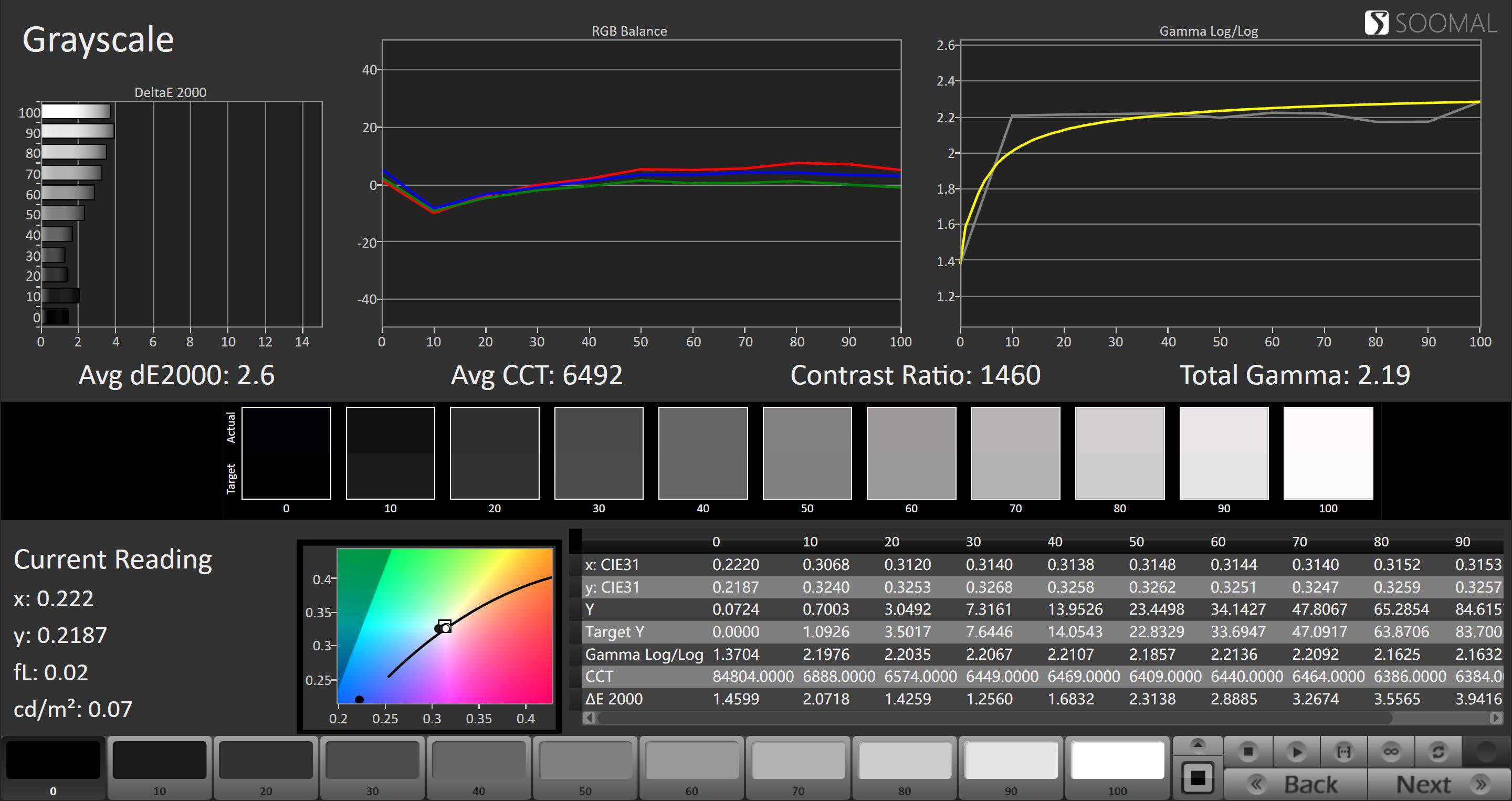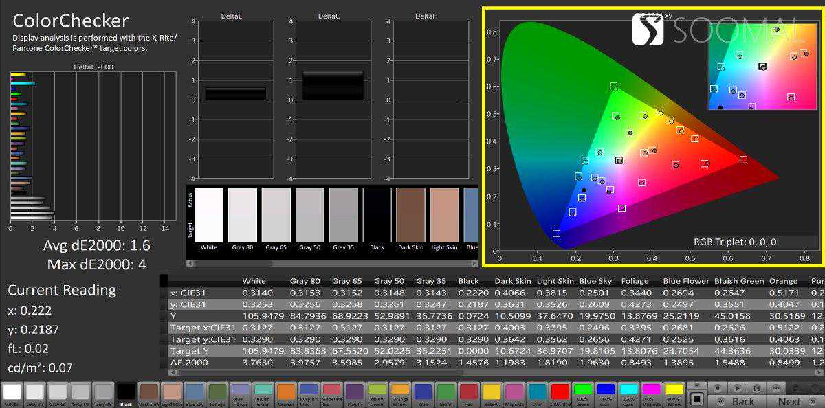 色彩模式专业屏幕亮度,cd/m21593灰阶[]2.19平均色温,K6492平均灰阶偏离,ΔE2.6