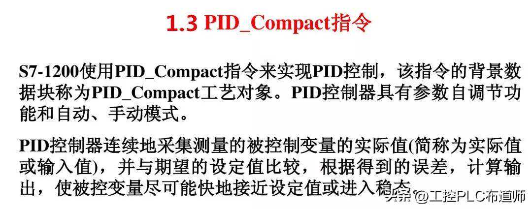 【导读】分享S7-1200中如何实现PID控制。概述【一】PID控制PID功能用于对闭环过程进行控制。PID控制适用于温度、压力和流量等物理量,是工业现场中应用最为广泛的一种控制方式,其原理是对被控对......