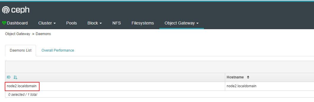 cephmdsstatcephfs:1{0==up:active}Cephfs不需要做其它集成工作,所以直接在Dashboard中就可以显示了。
