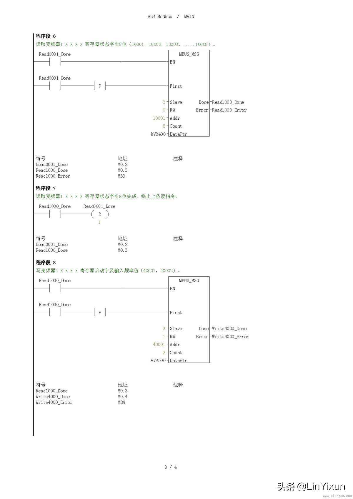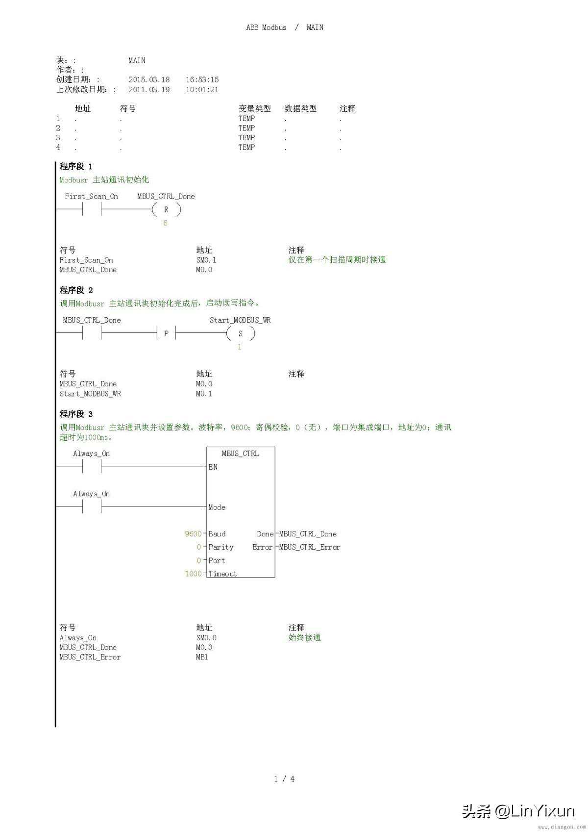 下面只说200smart为例。200和1200一样(请自己下载ABB550变频器说明书)使用S7200Smart库中的Modbus主站通讯程序。具体步骤如下:1.ABBACS550变频器设置:9802......