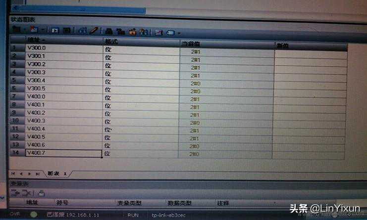 打开STEP7-MicroWINSMART软件中的状态图表,输入需要监控的变量。在程序中使用了VB300来监控变频器0XXXX寄存器中的控制字,在说明书中已明确了该寄存器中的控制字为只读(除非使用了强制功),因此使用读功能来读取,读取方式为字节,如,…;同样我们可以读取1XXXX寄存器中的状态字。(如图)