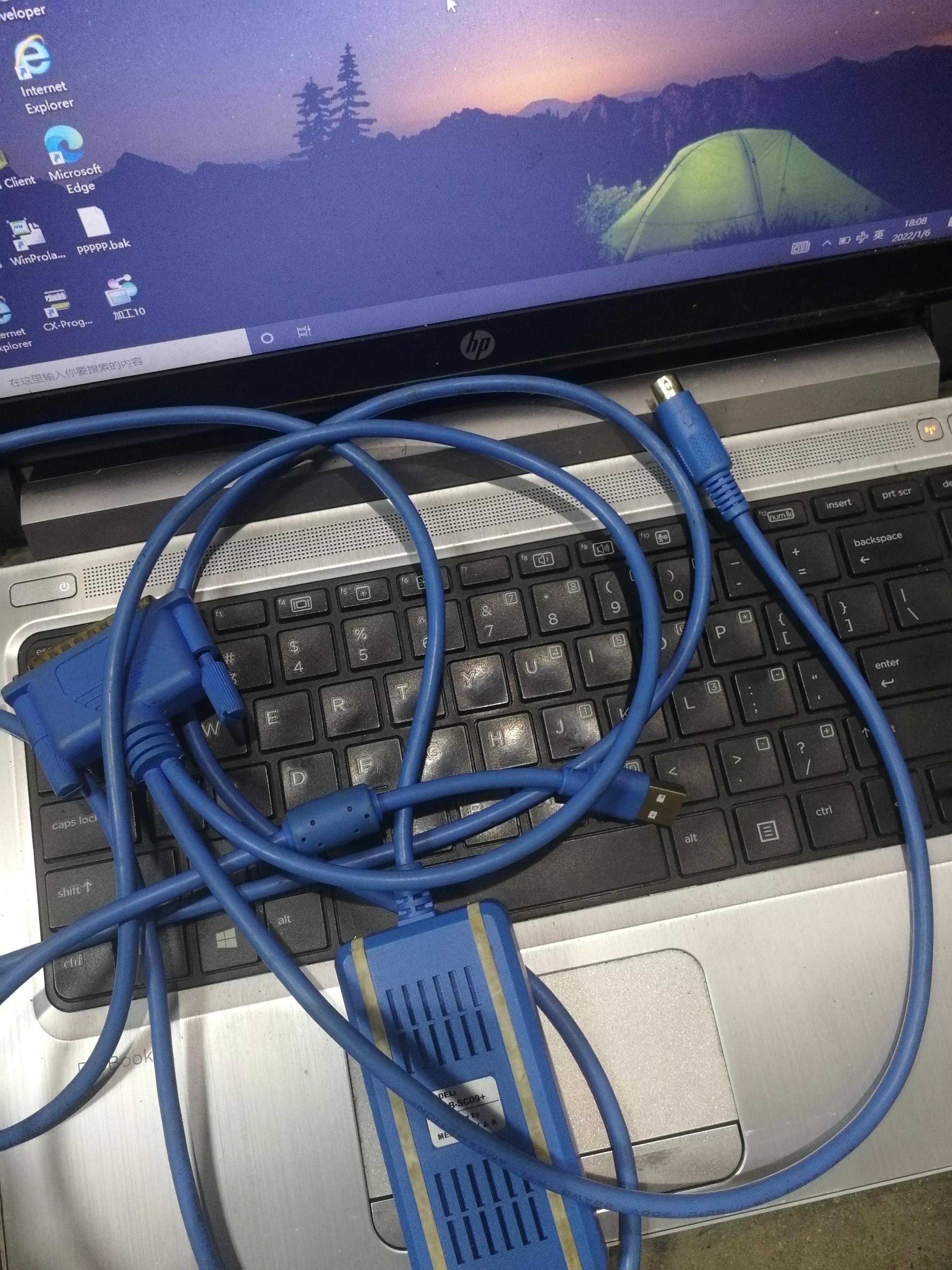 准备好之后,转换线USB头插入电脑USB口,另外一段航空针插去PLC如下图