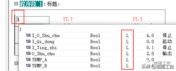 4、双击新建的FC进入后,在“接口”中建立各类型局部变量(是临时变量),以起保停电路为例,建立好后,在“??”处输入任意字符,出现各类型临时变量以供选择。L是临时变量存储区,临时变量以前面加“”表示,完成FB子程序并保存,如下图所示: