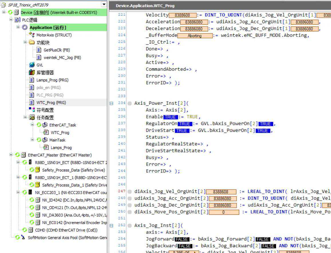 威纶通这个codesys授权不含softmotion,所以要使用威纶通开发的运动控制库或者自己写一个,我测试目前使用威纶通的库。