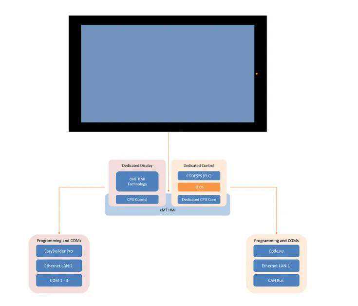 PLC编程口和总线口共用一个,HMI编程口用另一个,看美国威纶通论坛,设置一个选项,PLC和HMI编程可以共用一个网口,但我测试的触摸屏可能固件版本不一样,达不到那个效果,触摸屏和PLC通讯需要将两个网口用交换机连起来组局域网进行通讯,此处感觉很有优化的必要,我认为的方式是一个网口做EtherCAT总线口,另一个网口用于PLC和HMI编程。