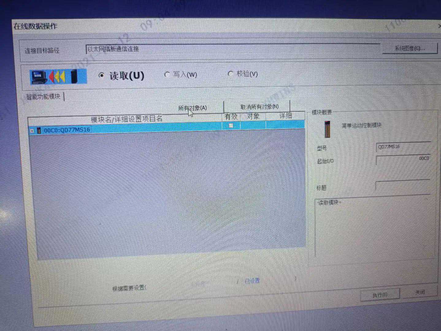 在里边添加新模块,填入选择的运动控制模块模块型号和起始Xy地址(此为我们在Plc中已分配好给Qd77MS16运动控制模块的地址),这时进行在线读取,否则点其它设置弹框要求分配可设置伺服放大器。