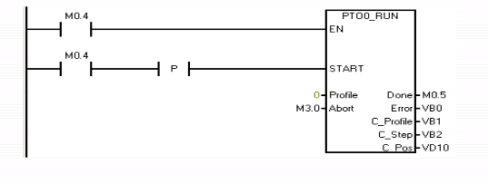 (控制)启用和初始化PTO输出。请在用户程序中只使用一次,并且请确定在每次扫描时得到执行。即始终使用作为EN的输入,如图所示。