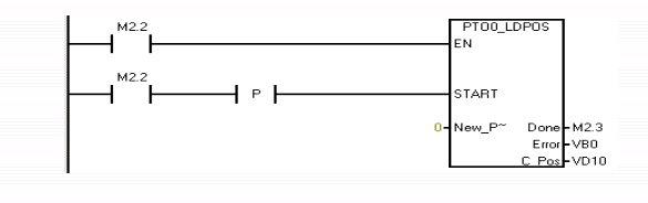 改变PTO脉冲计数器的当前位置值为一个新值。可用该指令为任何一个运动命令建立一个新的零位置。图是一个使用PTO0_LDPOS指令实现返回原点完成后清零功能的梯形图。
