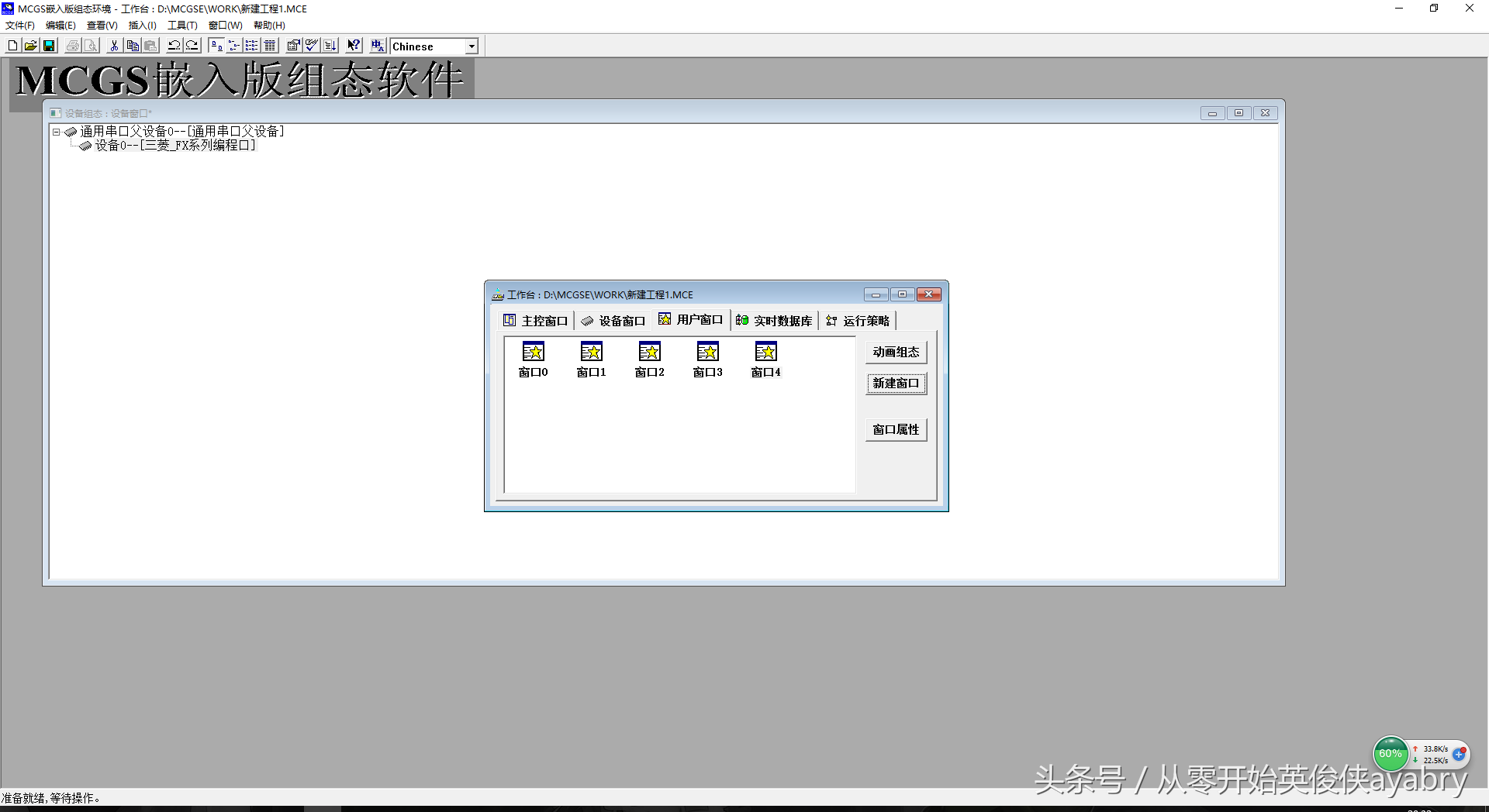 比如我们现在用的上位机编程软件为:mcgs(可以网上搜一下看看了解一下,如果需要软件可私信留言给我)