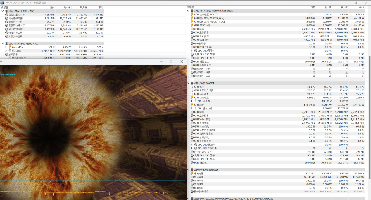 性能配置方面,我手中的这台机械师曙光16ProCPU选用Ryzen77735H,这枚8核心16线程处理器采用最新Zen3+架构,3.2GHz主频,最高频率可达4.75GHz,单核性能强劲,自带核显为Radeon600MSeries,图形处理速度相较上代有大幅提升。
