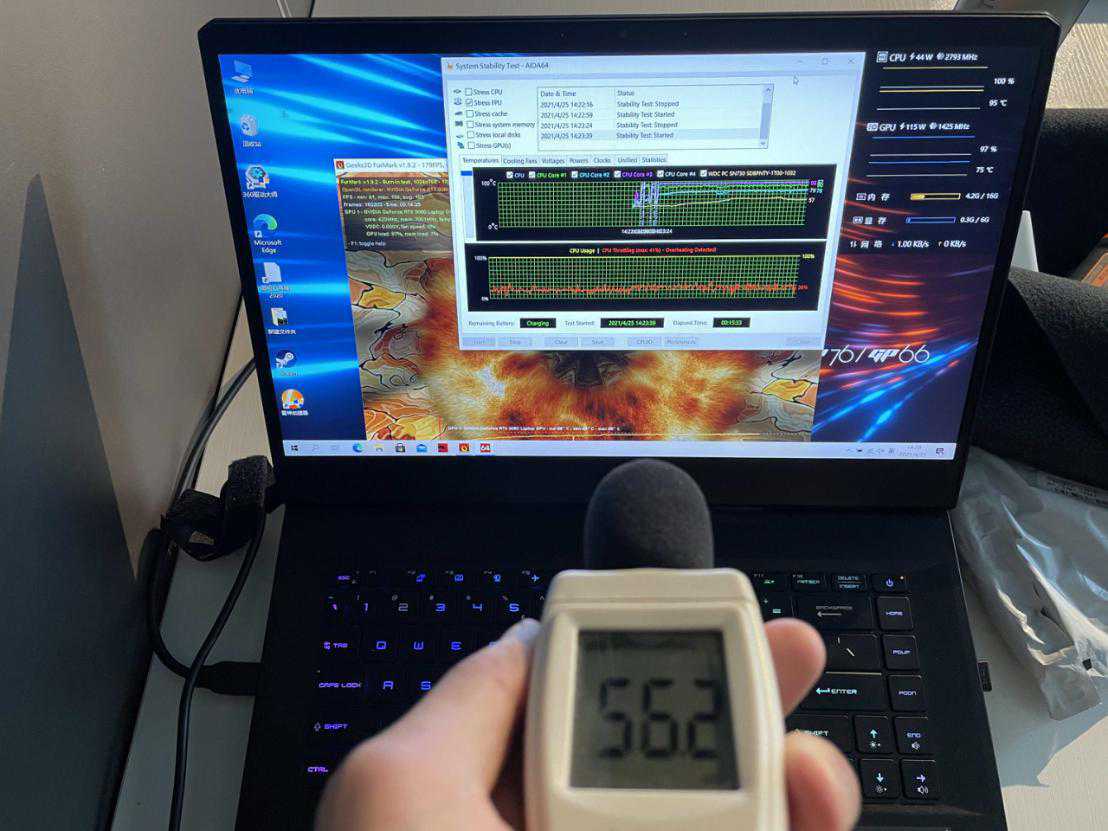 其中高性能模式下甚至可以手动对显卡进行超频,还可以开启风扇强冷模式,以噪音为代价换来更好的散热。实测开启强冷后人位噪音为54.7分贝。