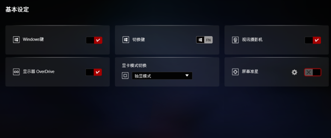作为一款面向玩家的游戏本,冲锋坦克2ProGP66在软件层面也做了一些有趣的功能。在控制中心DragonCenter中,可以打开显示器OverDrive,提升屏幕响应速度,也可以设置独显直连,还可以设定屏幕准星,方便在射击游戏中,用一些没有准星的枪进行”盲狙“。