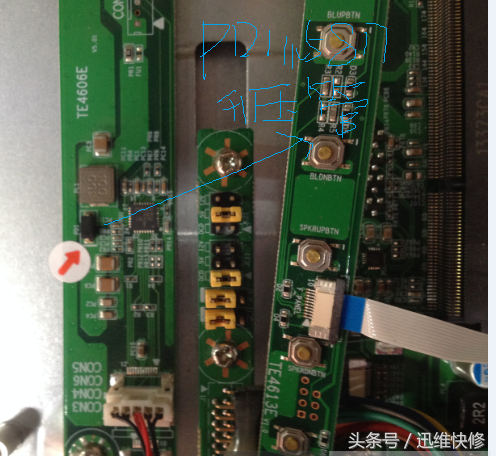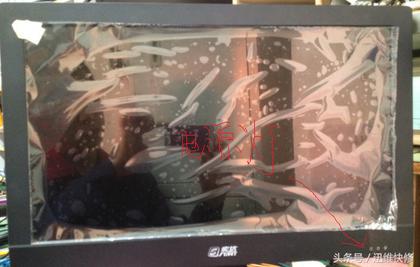 第一步,右下角电源指示灯闪烁,一般为机器背光供电或+12V高压电路异常引起的,三下五除二,立马折机,实物整机和主板图如下: