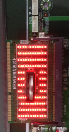 PL1电感5DUAL待机供电,PL2电感3.3DUAL待机供电,PL3电感为CPU和桥总线供电,声卡芯片上第1与第25脚的二级电压,3.3V与5V供电阻值未见异常。用DDR3内存卡数码灯治具检测CPU内存信号模块阻值也未见异常。如图: