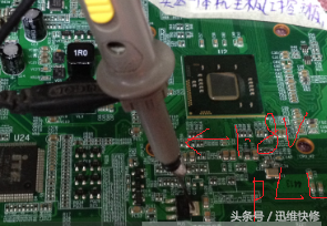 植入主题,用示波器打主板CPU复位信号,它是由南桥PLTRST提供,工控主板最好的复位信号测试点就是网卡芯片上第25脚(这是修机的小窍门了)。