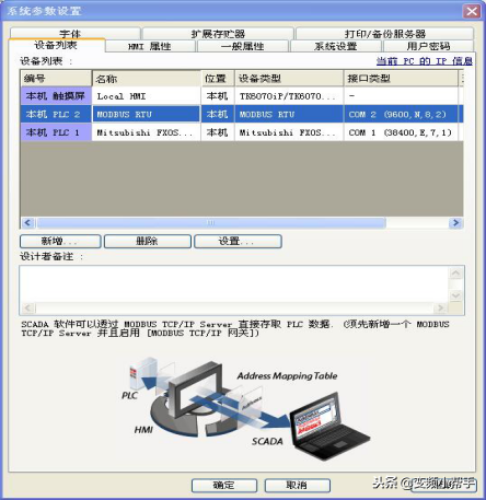 威纶通TK6070IP与三菱PLC+2台台达变频器通讯案例:一台威纶屏TK6070IP+1个FX三菱PLC+2台台达变频器