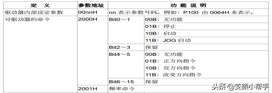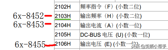 输出频率:1变频器读取指令6X-2命令前加2#后面不再赘述)